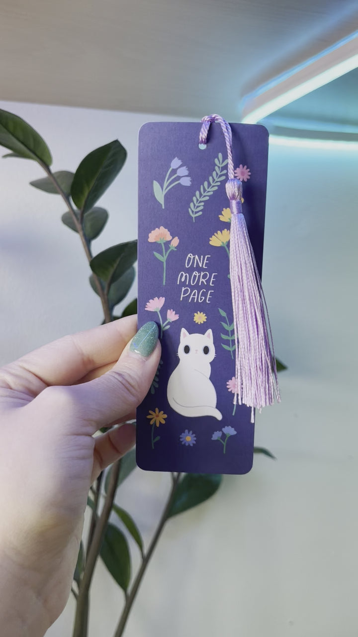 This double sided bookmark with lilac tassel will keep your place for you whilst looking so blooming pretty! Featuring the sweetest little cat surrounded by wildflowers.
